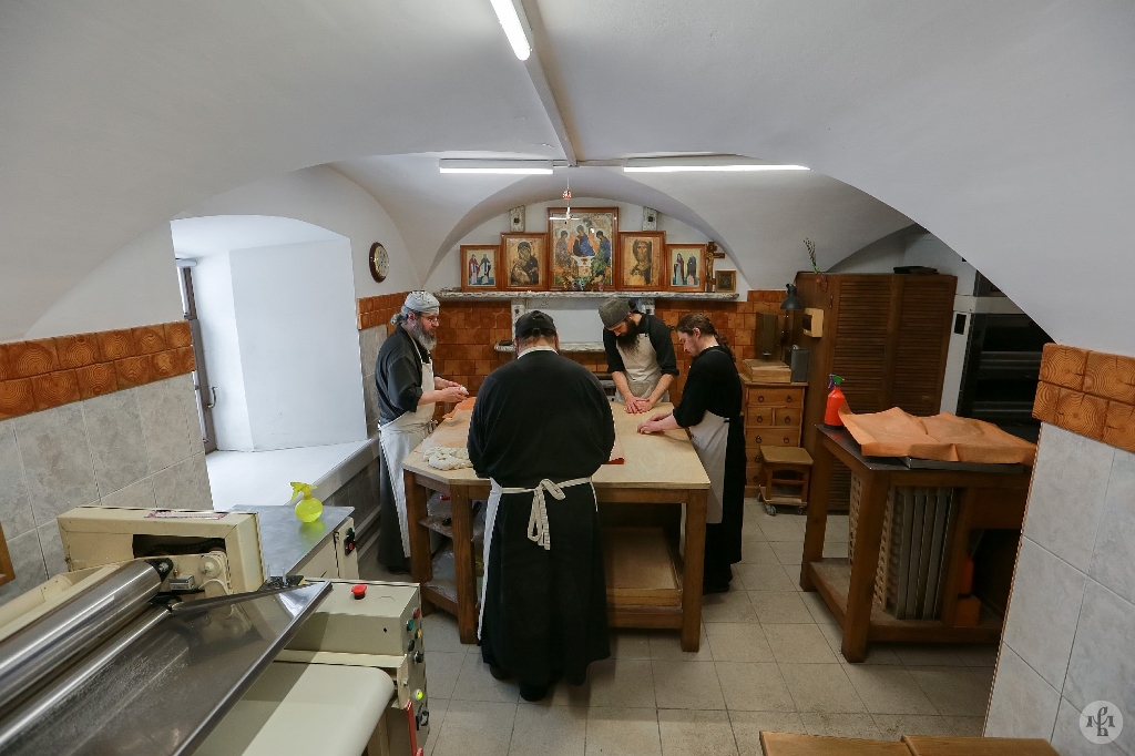 Само послушание в просфорне является одним из самых монашеских, так как в течение дня братья в основном молчат, творят Иисусову молитву или слушают трансляцию богослужений.