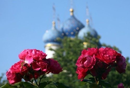 Розы Кадашевского храма (Москва): плетистые розы французской селекции (дом Мейян). Фото Александра Дегтярёва.