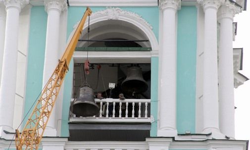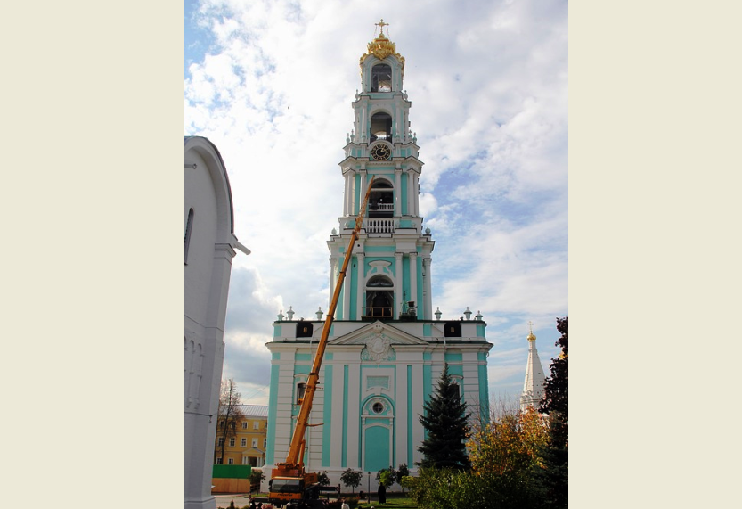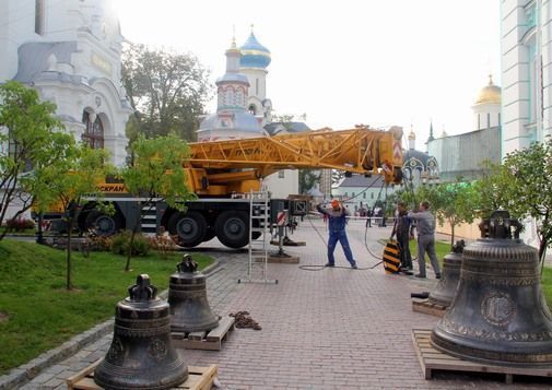 В день памяти преподобного Сергия Радонежского в ансамбле колоколов Свято-Троицкой Сергиевой Лавры завзвучат новые ноты – «до», «соль», «си-бемоль» и «ля» поднимали на колокольню обители с помощью огромного передвижного крана.