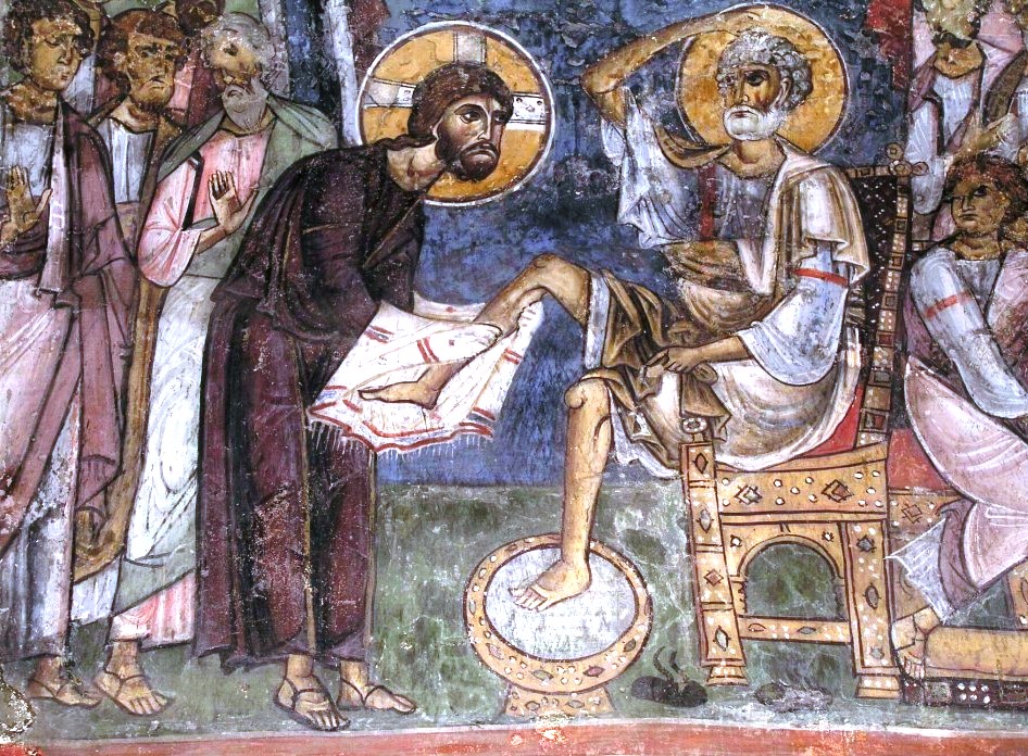 Господь «встал с вечери, снял с Себя верхнюю одежду и, взяв полотенце, препоясался. Потом влил воды в умывальницу и начал умывать ноги ученикам и отирать полотенцем, которым был препоясан». Когда очередь дошла до апостола Петра, тот начал прекословить: «Господи! Тебе ли умывать мои ноги?» Спаситель ответил: «Если не умою тебя, не имеешь части со Мною», после чего апостол Петр попросил Учителя омыть «не только ноги мои, но и руки и голову». Господь ответил: «омытому нужно только ноги умыть, потому что чист весь; и вы чисты, но не все». Закончив омовение, Христос преподал ученикам урок смирения: «если Я Господь и Учитель, умыл ноги вам, то и вы должны умывать ноги друг другу. Ибо Я дал вам пример…» Сказав это, Спаситель возмутился духом и засвидетельствовал, что один из учеников предаст Его.