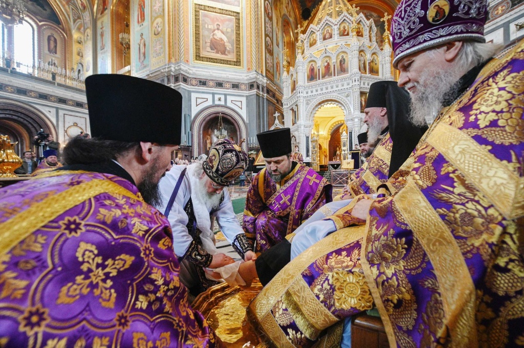 Сейчас этот трогательный чин совершается в кафедральных соборах при архиерейском служении в конце литургии святителя Василия Великого в Великий четверг. Он призван напомнить нам о безмерном снисхождении Спасителя, омывшего ноги Своим ученикам на Тайной вечери, а также показать ценность и высоту христианского смирения.
