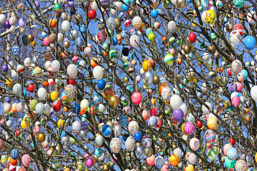 Первоначально цвет пасхальных яиц был только красным. В настоящее время их красят во все цвета радуги. Например, голубой (синий) напоминает нам о Царстве Небесном, зеленый символизирует возрождение к вечной блаженной жизни.
