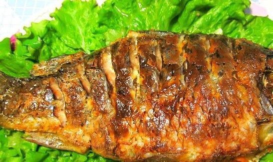 Обмазанный со всех сторон (как и противень, на который он помещается) маслом, карп отправляется в духовку при температуре 180 градусов на десять минут, дабы быть уже готовым, но… лишь с одного бока. Переворачиваем и ждем еще десять минут.