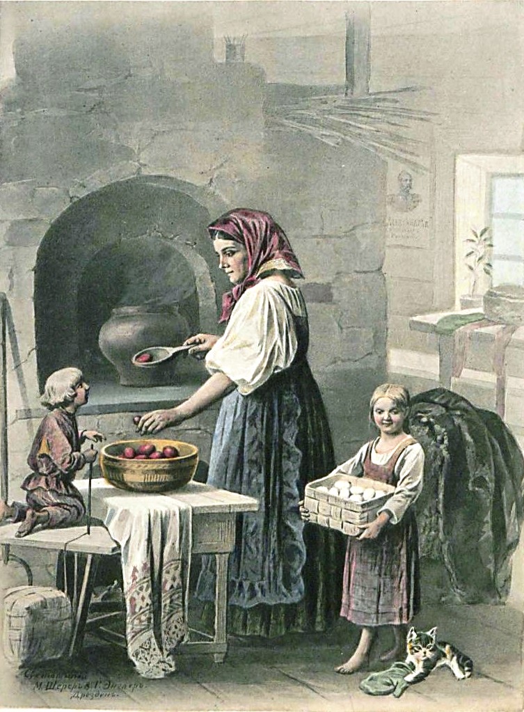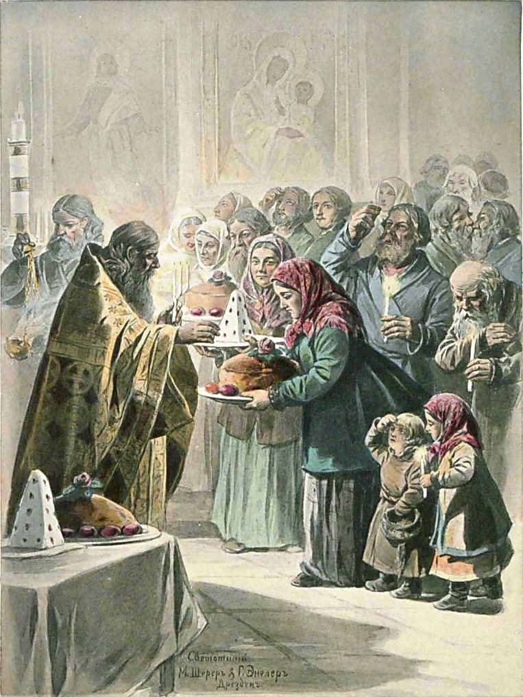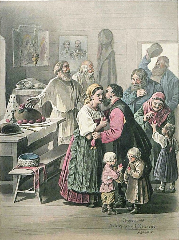 Немецкий фотограф Шерер в середине века работал в России, но потом отошел от дел и в 1867 году продал фирму курляндскому фотографу Альберту Мею. А сам уехал в Дрезден, где основал фотоцинкографию «M.Scherer & H.Engler». Так вот именно ее работы мы имеем возможность посмотреть сегодня. Итак, как немец видел русскую Пасху?