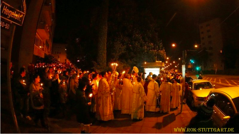 Man könnte meinen, die Diaspora sei ein Leben in der Fremde, einer Entfremdung dem Heimischen. Für den Orthodoxen Glauben ist es aber anders. Die Diaspora ist der Ort des Entstehens einer neuen, reichen und vielfältigen kirchlichen Kultur geworden. Des menschlichen und kirchlichen Kontakts von Völkern, deren Heimatländer in weiter Ferne von einander liegen. So ist es in Deutschland, in Bayern, in München. Die Einheit der Orthodoxie leuchtet besonders hell in der Osternacht!