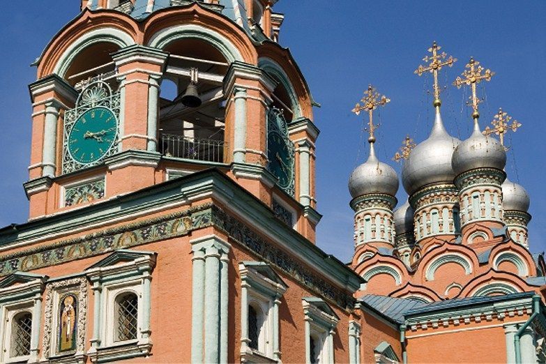 Еще когда вы только выходите из метро на станции «Полянка», взгляд сразу упирается в кресты и купола храма святителя Григория Неокесарийского. А после поворота за угол здания перед вами открывается одна из московских жемчужин, храм дивной красоты. Архитектурный стиль, в котором построен храм, так и называется – «дивное узорочье». Деревянная церковь на этом месте известна с XV в., а тот, что перед вами, построен в XVII столетии на средства царя Алексея Михайловича, отца Петра I. Девять тысяч поливных изразцов выполнил мастер Степан Иванович Полубес «сотоварищи». Дивно украшен был храм и внутри – в росписи принимал участие Гурий Никитин, иконы писал мастер Оружейной палаты Симон Ушаков. Сегодня эти иконы хранят Третьяковская галерея и Исторический музей.