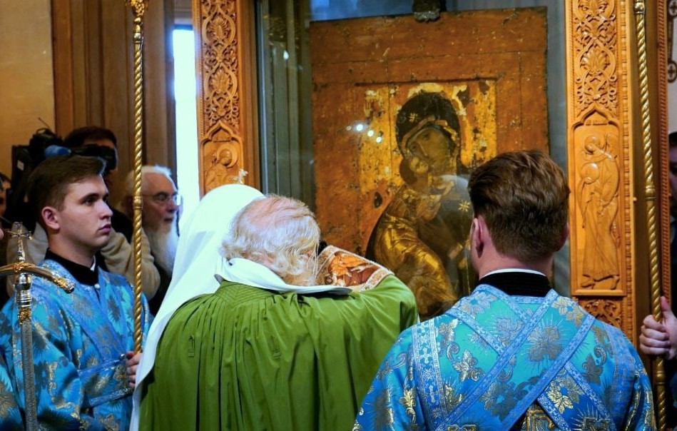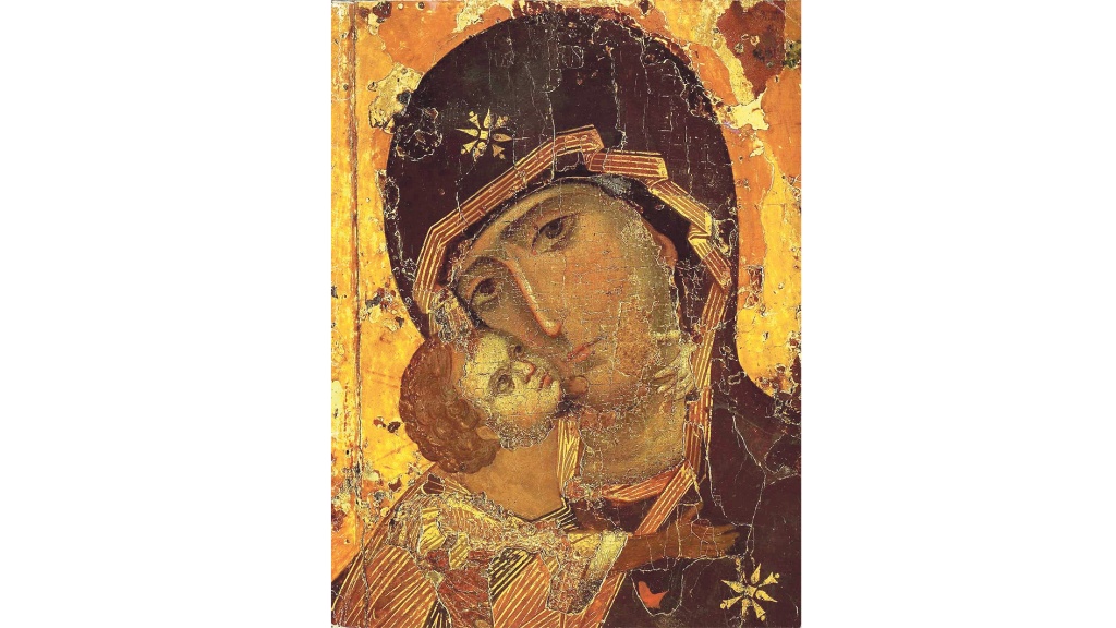 Происхождение: список образа, написанного, по преданию, апостолом и евангелистом Лукой по типу «Елеуса» («Умиление»). В V веке перенесена из Иерусалима в Константинополь, в XII столетии – на Русь как подарок киевскому князю Мстиславу Владимировичу. Самая ранняя из известных сохранившихся и одна из самых чтимых икон Русской Православной Церкви, прославленная избавлением Руси от крымского хана Махмет-Гирея (1521 г.), ордынского хана Ахмата (1480 г.), Тамерлана (1395 г.), ордынского эмира Едыгея (1408 г.). Перед ней венчались русские цари и избирались патриархи.