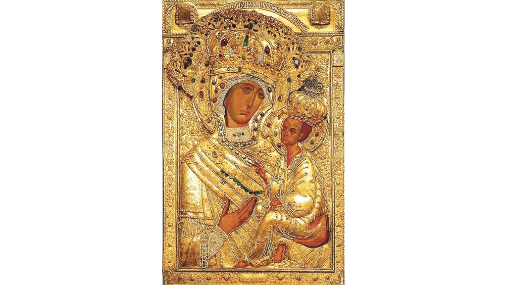 Происхождение: та самая «Одигитрия», написанная, по преданию, апостолом и евангелистом Лукой и принесенная на Русь дочерью константинопольского императора Анной, просватанной за черниговского князя Всеволода Ярославича. Смоленской икона стала во времена их сына князя Владимира Мономаха: в 1101 г. он перенес образ в Смоленск. Прославлена святыня спасением Смоленска от Батыя (1237 г.), ею также обносили Москву в день Бородинского сражения.