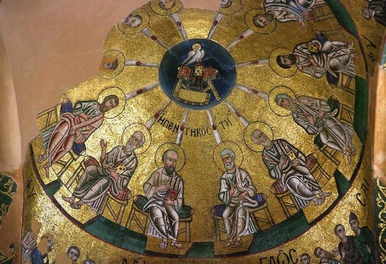 Правда, с XVIII века на православных иконах Пятидесятницы снова стала изображаться Богородица, но это уже результат западного влияния.