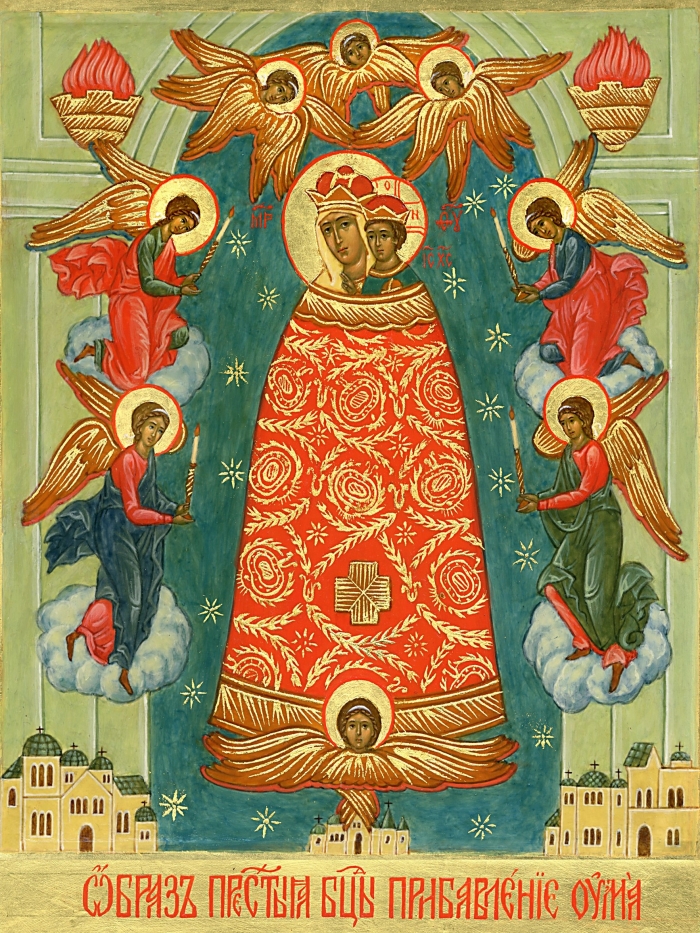 Среди целого ряда редких иконных образов образ Богоматери «Прибавление ума», празднование в честь которого в нынешнем году приходится на 30 августа, относится к наиболее почитаемым в Православной Церкви. Чаще всего перед ней молятся родители детей, не успевающих в учебе, сами школьники, студенты духовных семинарий и различных светских вузов. А ее этот образ особенно почитают родственники душевнобольных людей – к нему несут они свои молитвы, перед ним взывают ко Пресвятой Богородице о возвращении душевного здоровья, укреплении и расширении интеллектуальных возможностей. Однако несмотря на столь большой интерес к иконе со стороны верующих, сам иконографический образ Богородицы «Прибавление ума» еще недостаточно изучен, в истории его почитания сохранилось немало «белых пятен», да и большая часть древних списков оказалась утраченной.