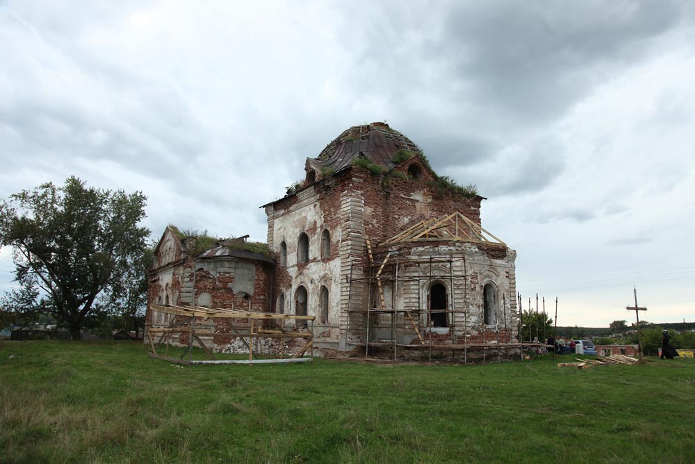 Несколько лет назад в селе был зарегистрирован приход в честь Вознесения Господня. Селяне стали собираться на совместную молитву в местной библиотеке. А прошлым летом на приходском совещании решили, что хватит им сидеть без храма. Собрались всем селом на субботник: скосили траву вокруг храма, вычистили мусор, грязь и коровьи лепешки, выровняли пол, заколотили проходы от местного скота, поставили двери. Работали весь май, июнь и начало июля. Говорят, ни один двор не остался в стороне. Вышли все от мала до велика, даже самые пожилые жители села.