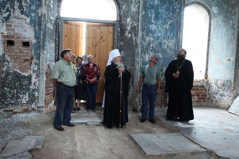 Первая за 80 лет служба – молебен – была совершена в храме в день памяти святых первоверховных апостолов Петра и Павла, а в канун Успения прихожане встречали митрополита Челябинского и Златоустовского Феофана, который приехал, чтобы осмотреть ход работ и встретиться с жителями села.