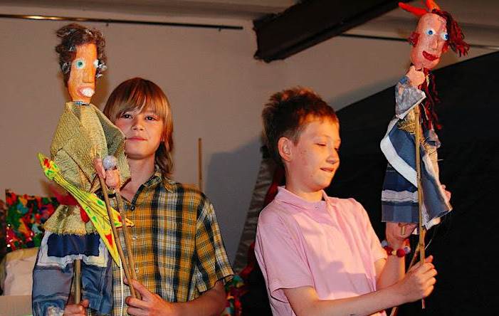 Поэтому решили ставить пьесы и сценки собственного сочинения, сделанные, так сказать, на «местном материале». Пригодился мой небольшой сценический опыт: в 1980-е годы я некоторое время подвизался в кукольном театре «Деревянная лошадь». Сами писали сценарии, сами делали кукол, сами играли…