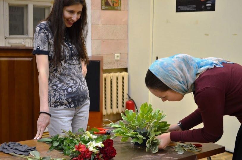 Еще один мастер-класс профессиональный флорист, а еще прихожанка и певчая  молодежного хора Илиинского храма в Черкизове Анна Бондаренко провела 27 марта – присутствующие учились составлять букет с вербами к празднику Входа Господня в Иерусалим.