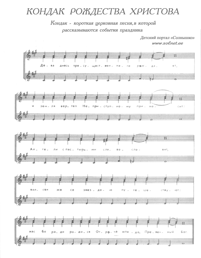 А начнем мы, конечно, с главных песнопений этого дня – тропаря и кондака Рождества Христова.