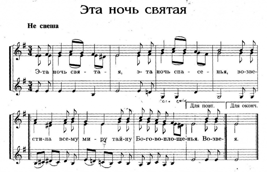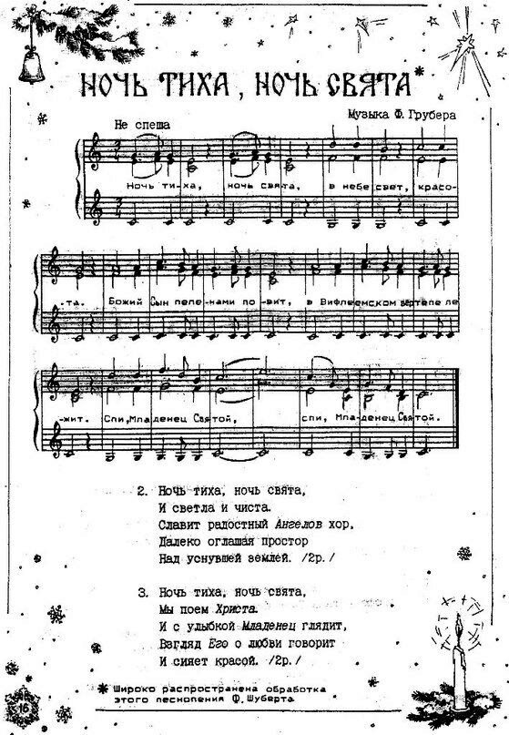 Это русский перевод знаменитой песни «Stille Nacht», слова для которой в 1818 году сочинил австрийский пастор Йозеф Мор, а музыку написал школьный учитель Франц Грубер. Известной стала обработка этого мотива великим композитором Ф. Шубертом).