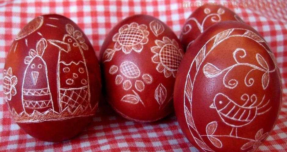 Драпанки – яйца с вырезанным по мягкому воску, что в значительном количестве налит с боков, рисунком.