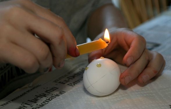 Крапанки – это когда на сваренное вкрутую яйцо капают расплавленным воском со свечи, после чего на нем остаются крапинки в мелкий горошек.