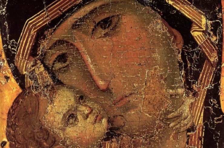 Факт второй. Сам образ, пришедший на Русь из Византии в начале XII века, представляет собой уже византийскую интерпретацию иконы. Исследователи считают Владимирскую икону выдающимся памятником византийской иконописи XI века.