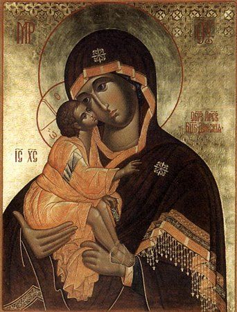Этот образ Пресвятой Богородицы был написан Феофаном Греком. В день Куликовской битвы, согласно преданию, икона находилась среди русского войска, подавая ему помощь, а после победы была передана донскими казаками в дар великому князю Димитрию Донскому, который перенес ее в Москву.