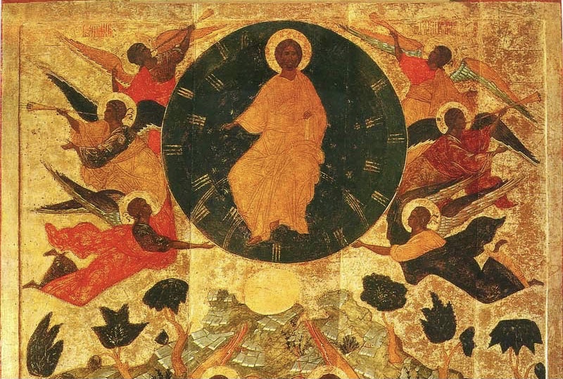 На всех иконах Вознесения Христос изображен в славе Судии мира, как Господь Вседержитель, Который придет и приведет с Собой полки ангельские.